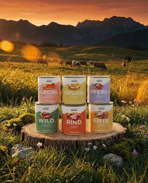 Empfehlung: Eine bewährte Empfehlung für ein ausgewogenes Menü ist, über die Woche hinweg 3x helles Fleisch (z. B. Geflügel, Ente), 3x rotes Fleisch (z. B. Wild, Rind, Pferd) und 1x Lachs zu füttern. Diese Vielfalt an Proteinen und Omega-3-Fettsäuren bietet eine optimale Ernährung für deinen Hund. Es ist wichtig zu beachten, dass der Wechsel der Sorten deinem Hund verschiedene Vitamine und Proteinquellen liefert.